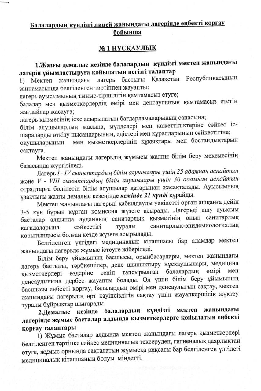 05 июнь 2023 0 1 2 3 4 5 Балаларды күндізгі лицей жанындағы лагерінде еңбекті қорғау бойынша №1 НҰСҚАУЛЫҚ Осы беттің QR-коды:QR-код этой страницы: