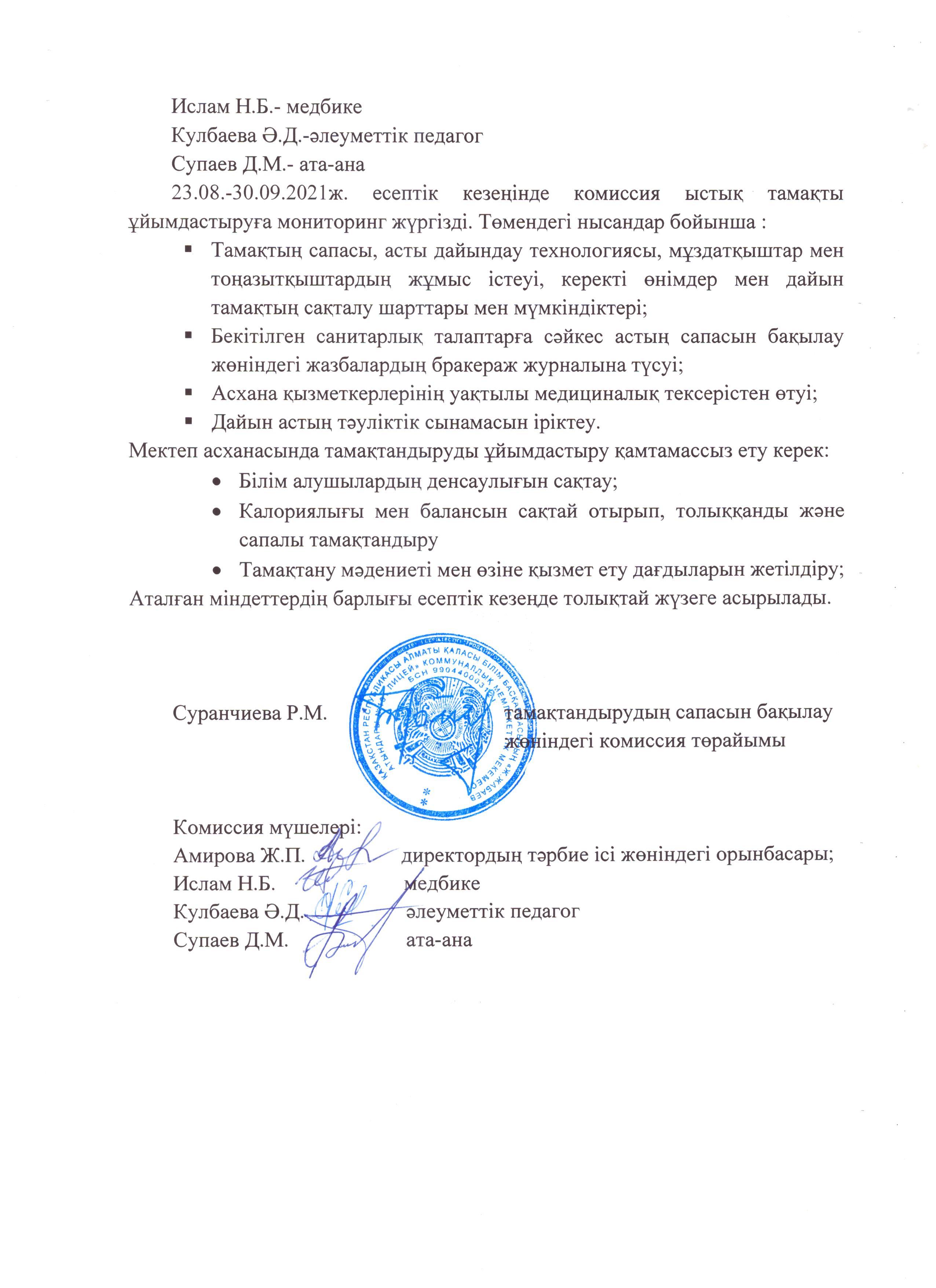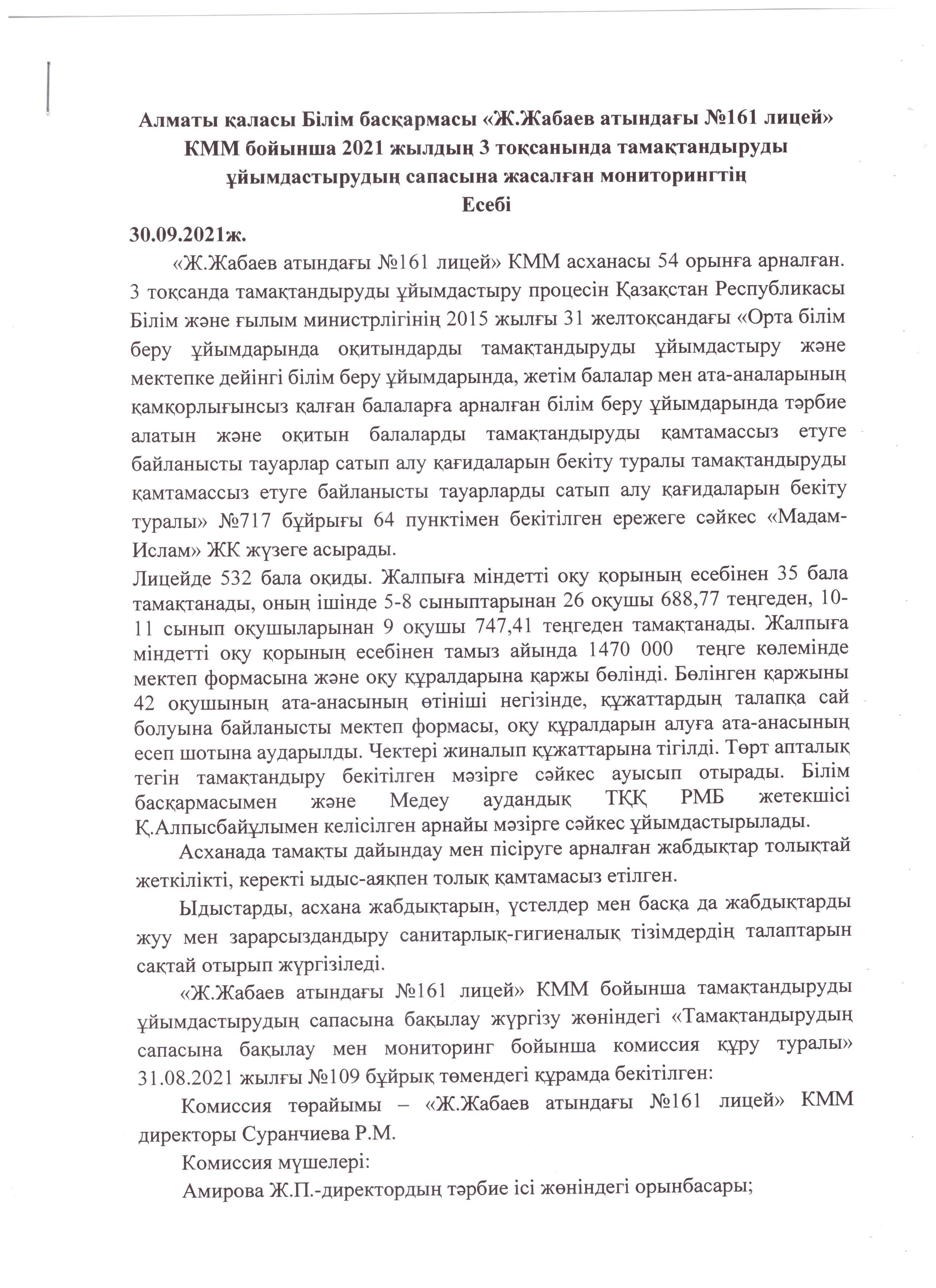 30 март 2021 0 1 2 3 4 5 2021 жылдың 3-тоқсанында тамақтандыруды ұйымдастырудың сапасына жасалған мониторингтік есебі Осы беттің QR-коды:QR-код этой страницы: