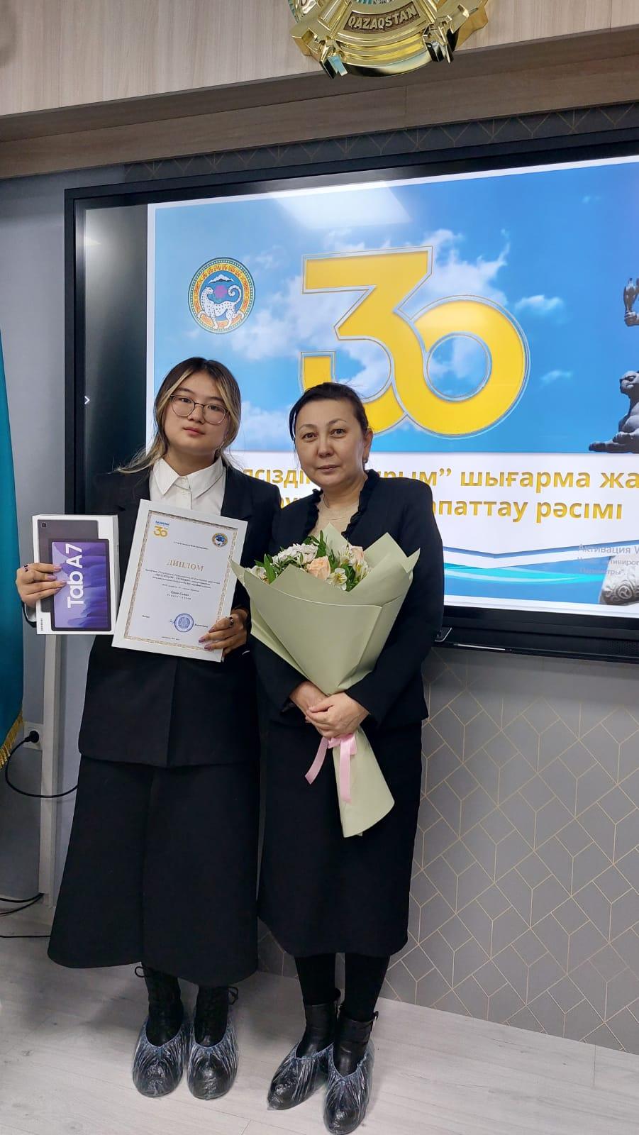 Алматы қаласы Білім басқармасының ұйымдастыруымен ҚР Тәуелсіздігінің 30 жылдығына орай «Тәуелсіздік – тұғырым» тақырыбында білім беру ұйымдары оқушыларының және колледж студенттерінің арасында шығарма жазу байқауы өткізілді. Байқаудан Медеу ауданы №161 лицейдің 10-сынып оқушысы Еркін Самал бас жүлде алды. Жетекшісі: Акыжанова Гулнара Токмуханбетовна