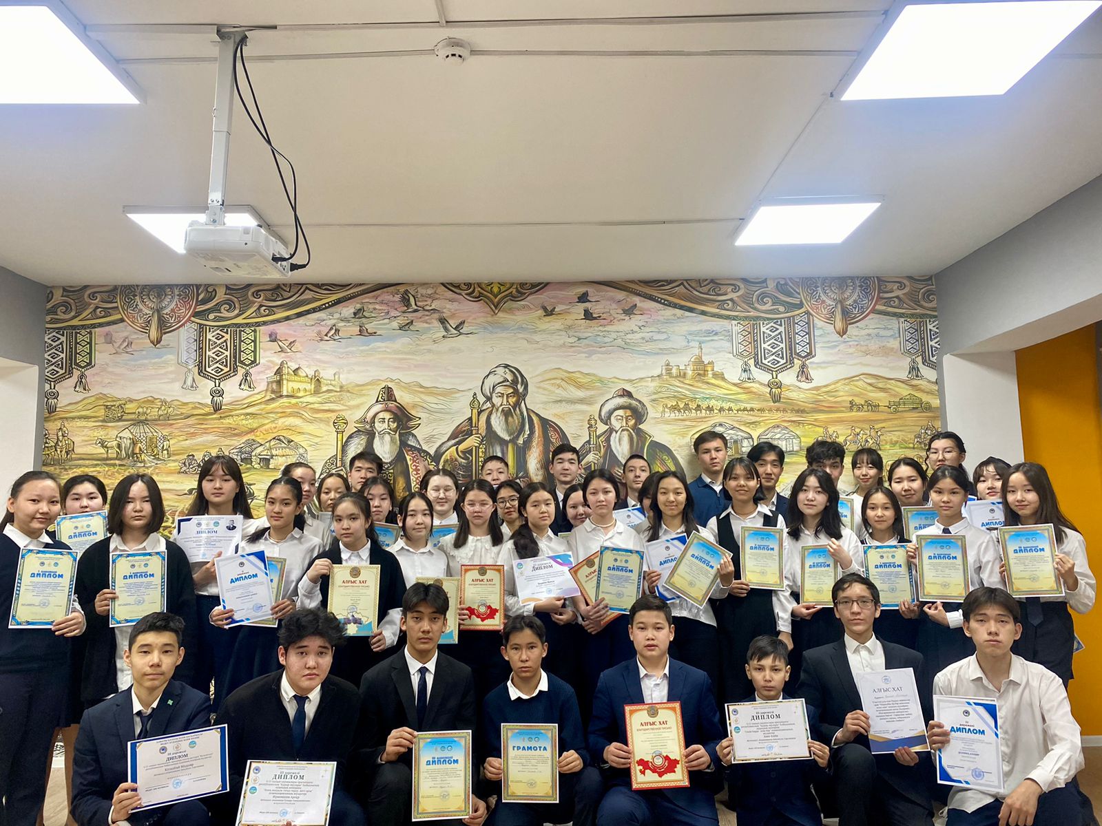 11Б - Нұртазаев Санжар - Физика пәнінен - III орын 9А - Шайых Ердәулет - Информатика пәнінен - III орын 9А - Дәулет Арайлым - Биология пәнінен - III орын 10Б - Тұрсын Еңлік - Биология пәнінен - III орын 11Б - Нұрланқызы Нұрайым - Биология пәнінен - III орын 10Ә - Төленді Айғаным - Қазақстан тарихы пәнінен - III орын 9Ә - Аманжолова Жазира - Қазақ тілі мен әдебиеті пәнінен - III орын 10Ә - Серікжан Ақнұр - Құқық негіздері пәнінен - III орын Жеңістеріңіз құтты болсын!!!
