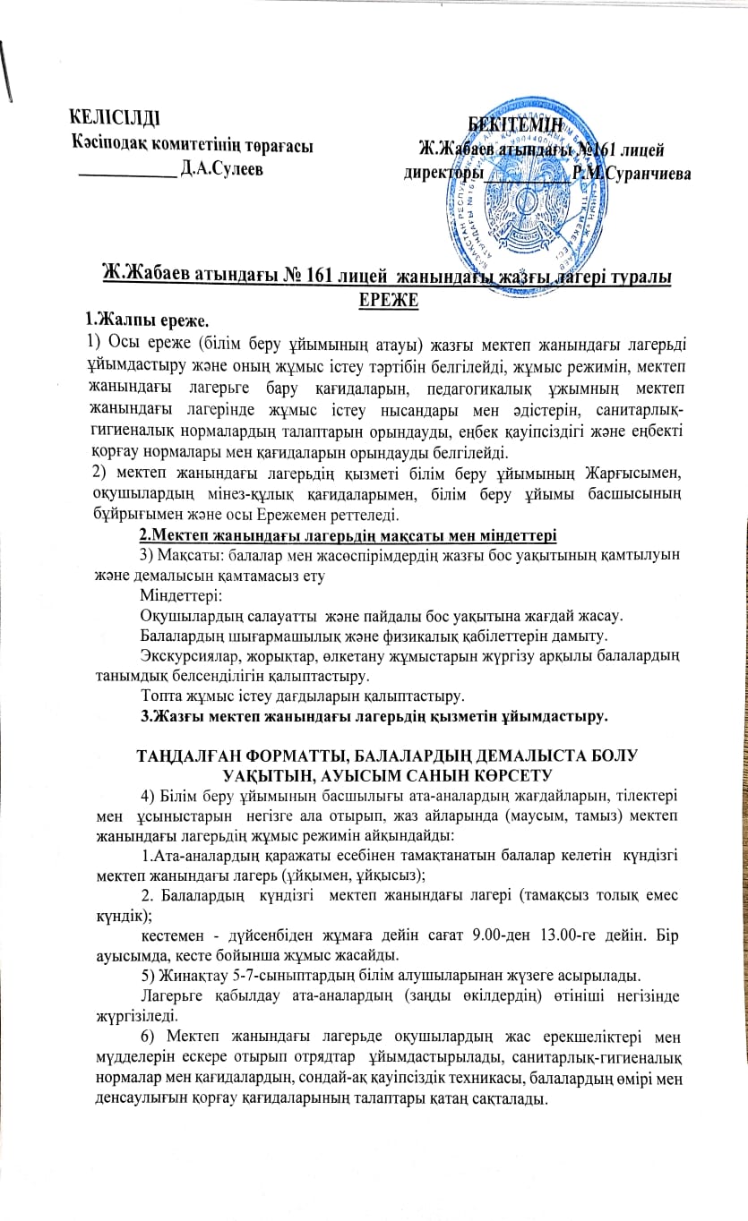 05 июнь 2023 0 1 2 3 4 5 Ж.Жабаев атындағы №161 лицей жанындағы жазғы лагері туралы ЕРЕЖЕ Осы беттің QR-коды:QR-код этой страницы:
