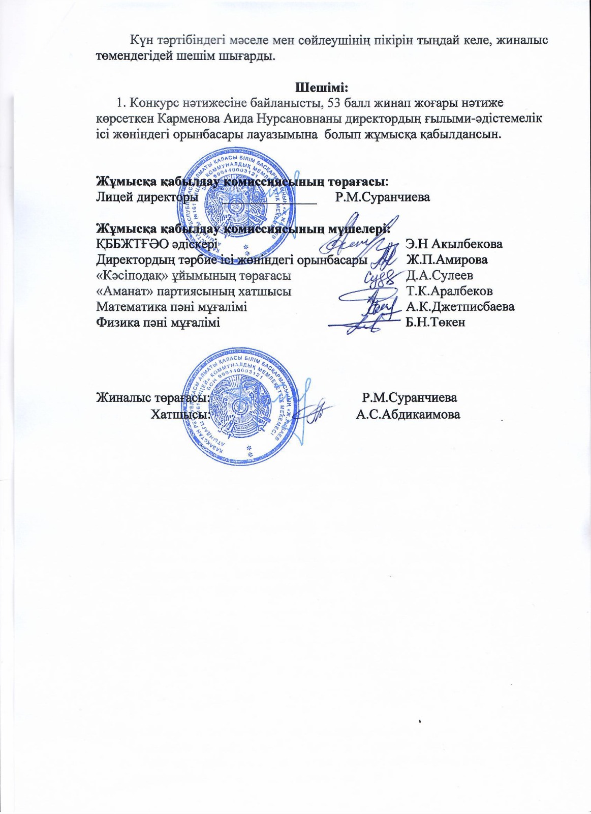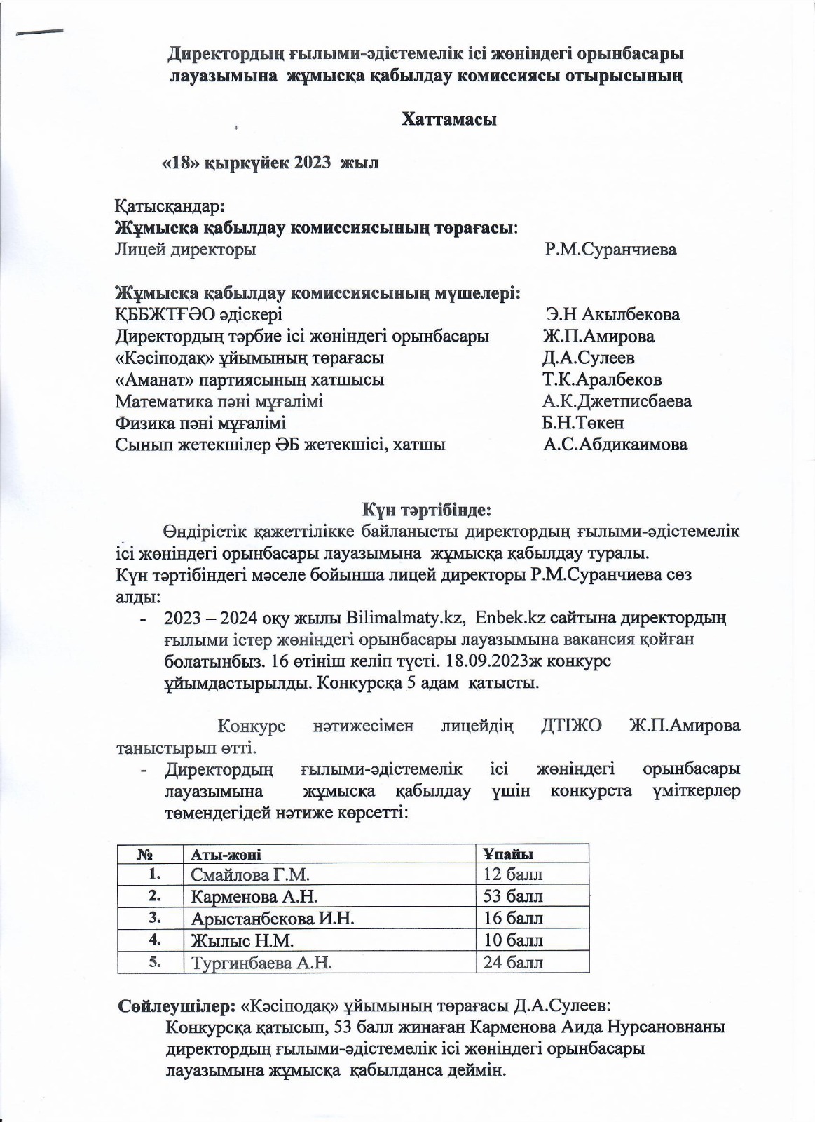 18 сентябрь 2023 0 1 2 3 4 5 Директордың ғылыми-әдістемелік ісі жөніндегі орынбасары лауазымына жұмысқа қабылдау комиссиясы отырысының хаттамасы Осы беттің QR-коды:QR-код этой страницы: