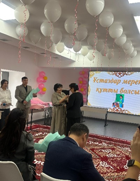 Лицей ұстаздарына тәрбие сағаты және тренинг сабақтары өткізілді. Сабақ сайыс түрінде жүргізілді. Сонымен қатар 13.00-де Ұстаздарға арналған лицей оқушыларының мекеркелік концерт өткізілді. Концерт жоғары дәрежеде өткізілді. Концерт 11-сынып оқушыларының ұстаздарға арналған бейне роликпен басталып, 5-сынып оқушылар «Мұғалім болу оңай емес» әнін хормен жалғасты. 5-11 сыныптар арасында оқушылар ұстаздарға арнап өлең шумақтары мен қанатты сөздерді мәнерлеп оқыды. 11-сынып оқушылары «Ұстазым» ән шырқап заманауи би биледі. «Ұстазым менің ұстазым» әнін хормен шырқады. Бейне ролик арқылы ұстаздардың көңілді видео роликпен көріп ұстаздардың көңілі көтеріліп, оқушыларға алғыстарын айтты. Сонымен қатар Лицей директоры Т.Ш.Сарыбаева Алматы қаласы Медеу ауданы әкімінің және Кәсіп одақ «Ұстаз» ұйымының, өз атынан ұстаздарды алғыс хатпен марапаттады.