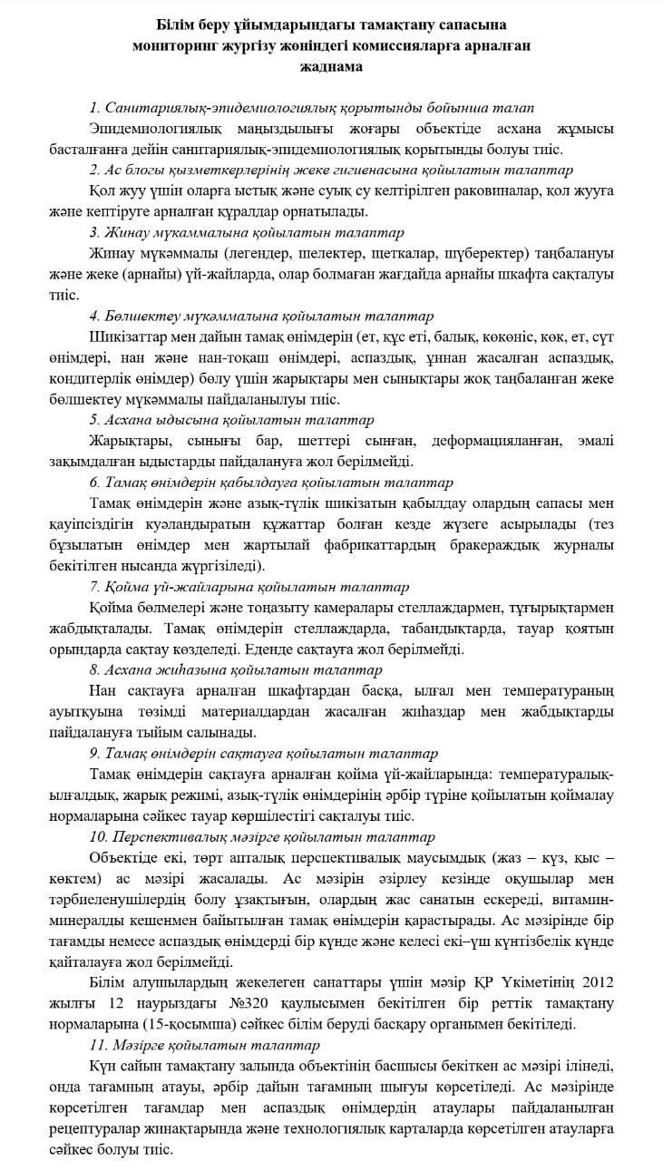 06 январь 2023 0 1 2 3 4 5 Білім беру ұйымдарындағы тамақтану сапасына мониторинг жургізу жөніндегі комиссияларға арналған жаднама Осы беттің QR-коды:QR-код этой страницы: