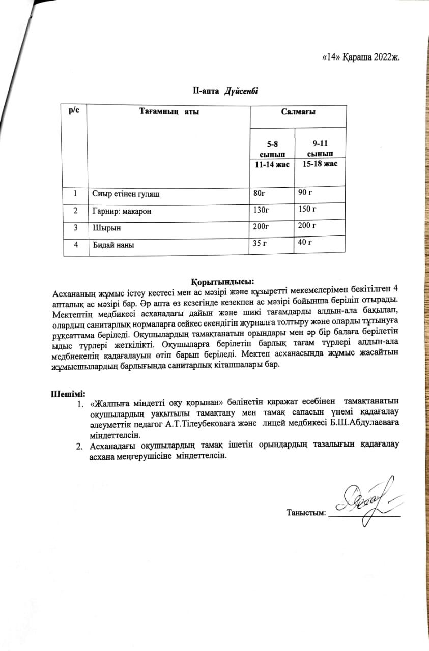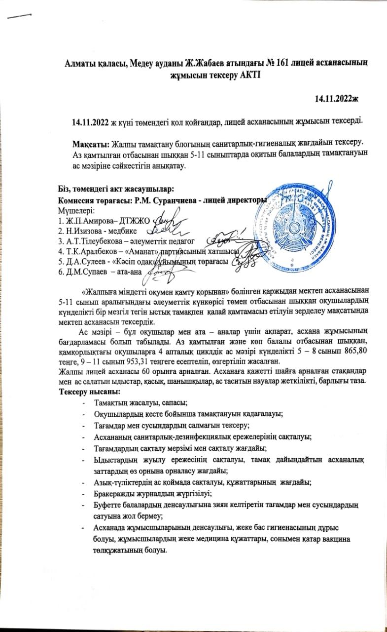 14 ноябрь 2022 0 1 2 3 4 5 Ж.Жабаев атындағы №161 лицей асханасының жұмысын тексеру АКТ-сі Осы беттің QR-коды:QR-код этой страницы: