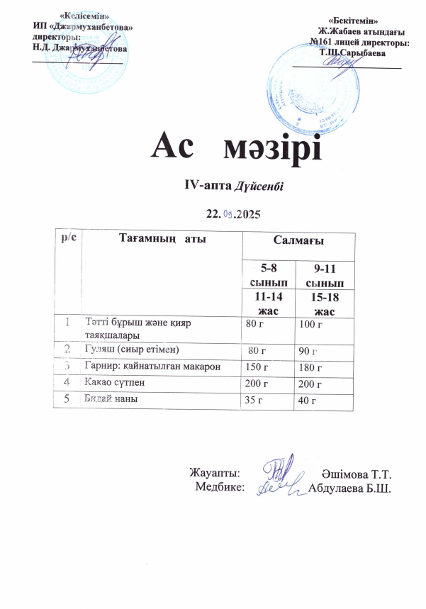 22 сентябрь 2025 0 1 2 3 4 5 Күнделікті тегін тамақтанатын оқушылардың ас мәзірі Осы беттің QR-коды:QR-код этой страницы: