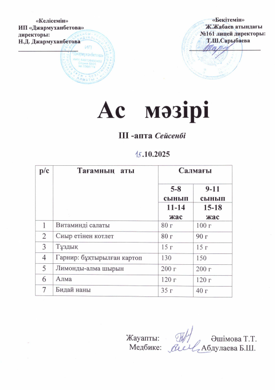 15 октябрь 2025 0 1 2 3 4 5 Күнделікті тегін тамақтанатын оқушылардың ас мәзірі Осы беттің QR-коды:QR-код этой страницы: