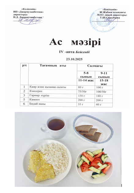 23 октябрь 2025 0 1 2 3 4 5 Күнделікті тегін тамақтанатын оқушылардың ас мәзірі Осы беттің QR-коды:QR-код этой страницы: