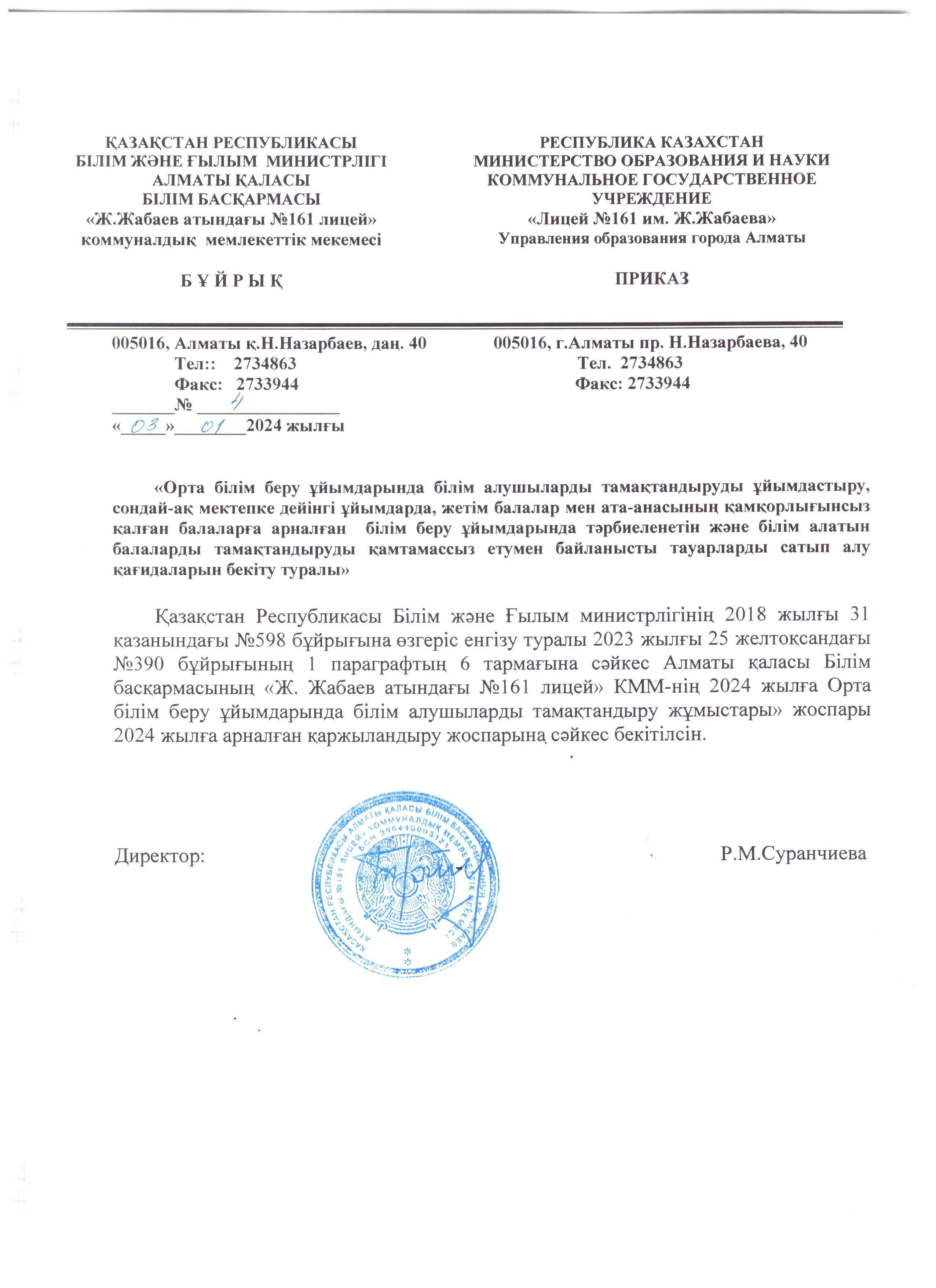 05 январь 2024 0 1 2 3 4 5 План приобретение услуг и товаров на 2024 год Осы беттің QR-коды:QR-код этой страницы: